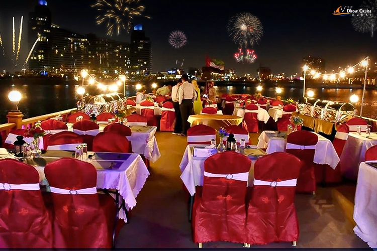 Start the 2027 in Dubai riding the most lavish New Year’s Eve Canal Cruise Dinner. It is the perfect celebration opportunity on the night of 31st December with your loved ones. This amazing cruise ride is a great opportunity to relax and spend quality time away from the city’s maddening crowd. Hence, with good food, entertaining shows, and NYE fireworks show views across the spectacular Dubai skyline, this will give perfect momentum to the upcoming year. Therefore, don’t wait, and join the special celebration by riding this premium cruise in the heart of the city with Visit Dhow Cruise Dubai.