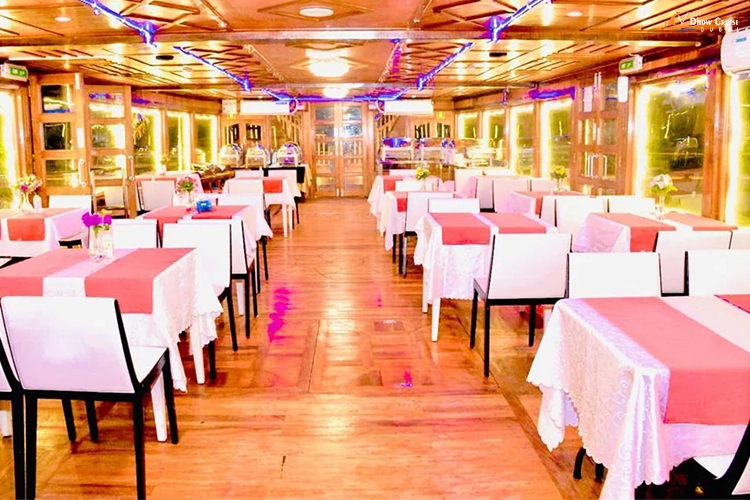 - A lip-smacking dinner buffet arranged for the guests onboard is a must-try. Therefore, taste from a variety of international dishes and delicacies.